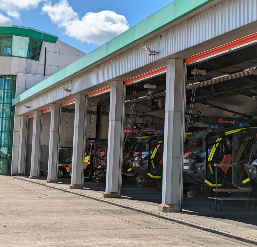 Heathrow Airport’s Fire HQ and Fire East Stations required the replacement of its existing roller shutter doors to improve reliability, safety, and operational efficiency. The original doors had reached the end of their service life, resulting in frequent faults, slow response times, and increasing maintenance requirements—posing a risk to emergency response readiness.